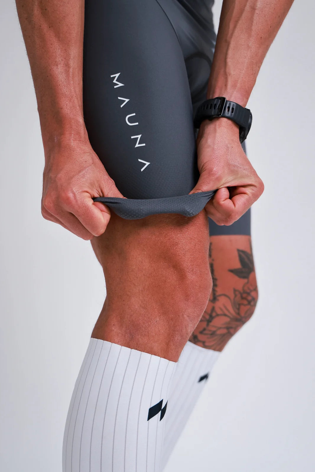 Um corte elegante e justo, projetado para eficiência aerodinâmica. Reduz rugas e excesso de tecido, mantém o conforto sob a roupa de neoprene e permanece firme em todas as etapas da corrida.